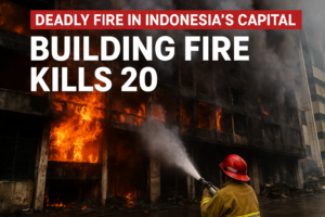 Meta Description: A battery explosion inside a seven-story office building in central Jakarta triggered a massive fire,...